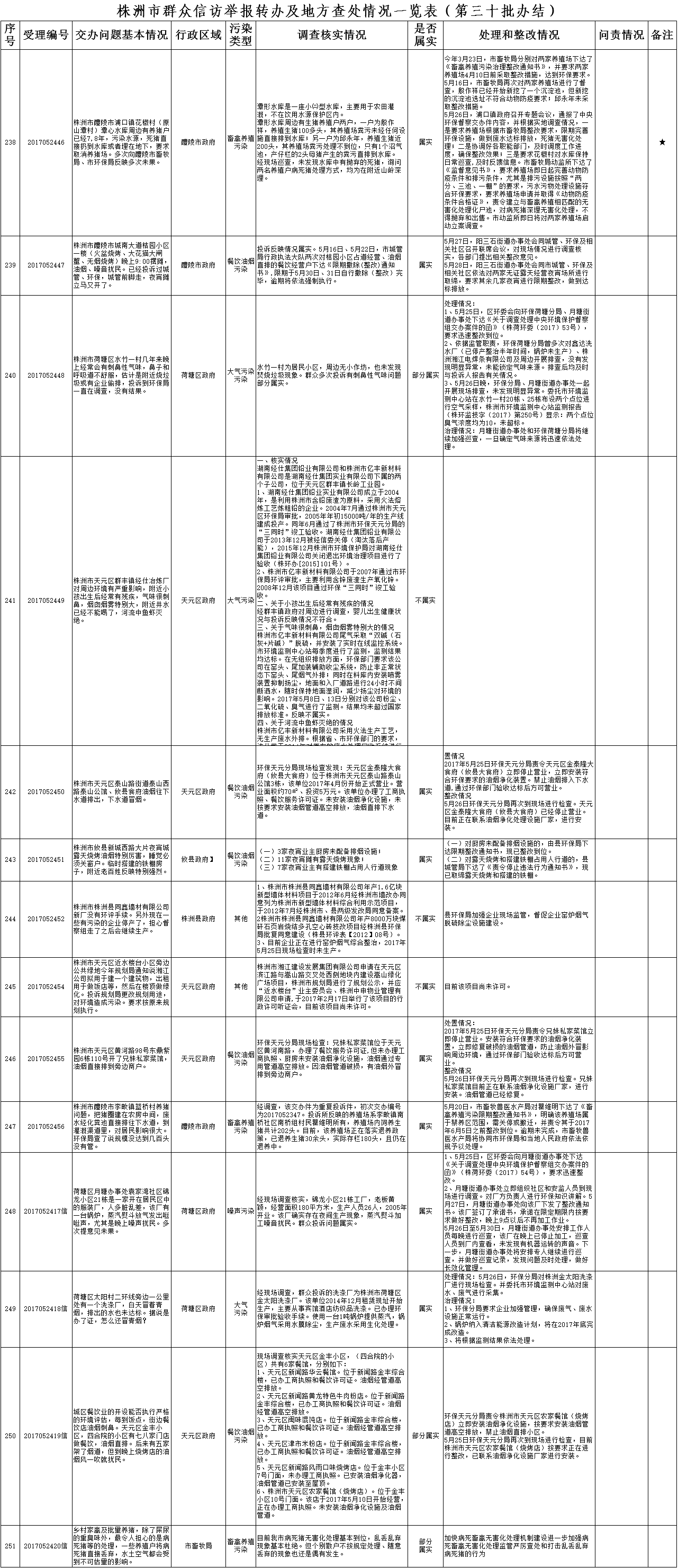 株洲市群众信访举报转办及地方查处情况一览表(第三十批办结)