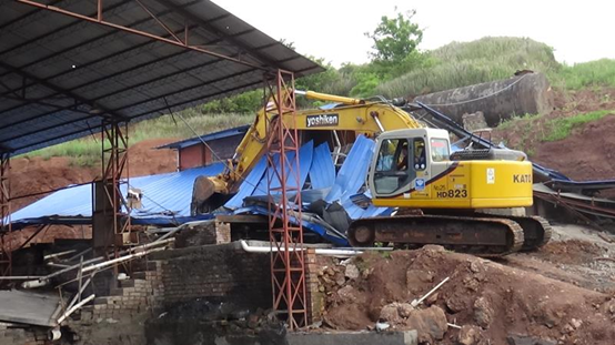 经调查核实,被投诉企业位于茶陵县马江镇塘富村,为一家非法选矿厂,因利用渗坑排放含重金属废水,涉嫌严重污染环境犯罪,5月3日,县环保局依法将该案移送县公安机关处理,同时对厂区残余的尾矿、废水和原料进行应急安全处置;5月5日下午,分管副县长刘新明带领由县政府办、环保局、法制办、公安局、经科局、市场监督管理局和马江镇政府等部门组成的40余人执法队伍,对该厂进行强制拆除,达到“场棚不见、设备不见、污染物不见”目的,至此,非法选矿厂被彻底捣毁。下一步县政府将对污染地块进行评估,采取有效治理措施,彻底消除环境安全隐患。